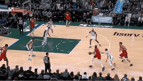 火箭打雄鹿,火箭這邊看杜蘭特立棍單打字母哥,雄鹿那邊看字母哥內(nèi)線為所欲為翻江倒海。